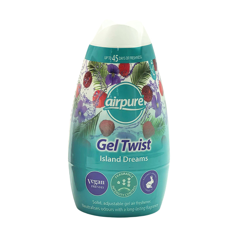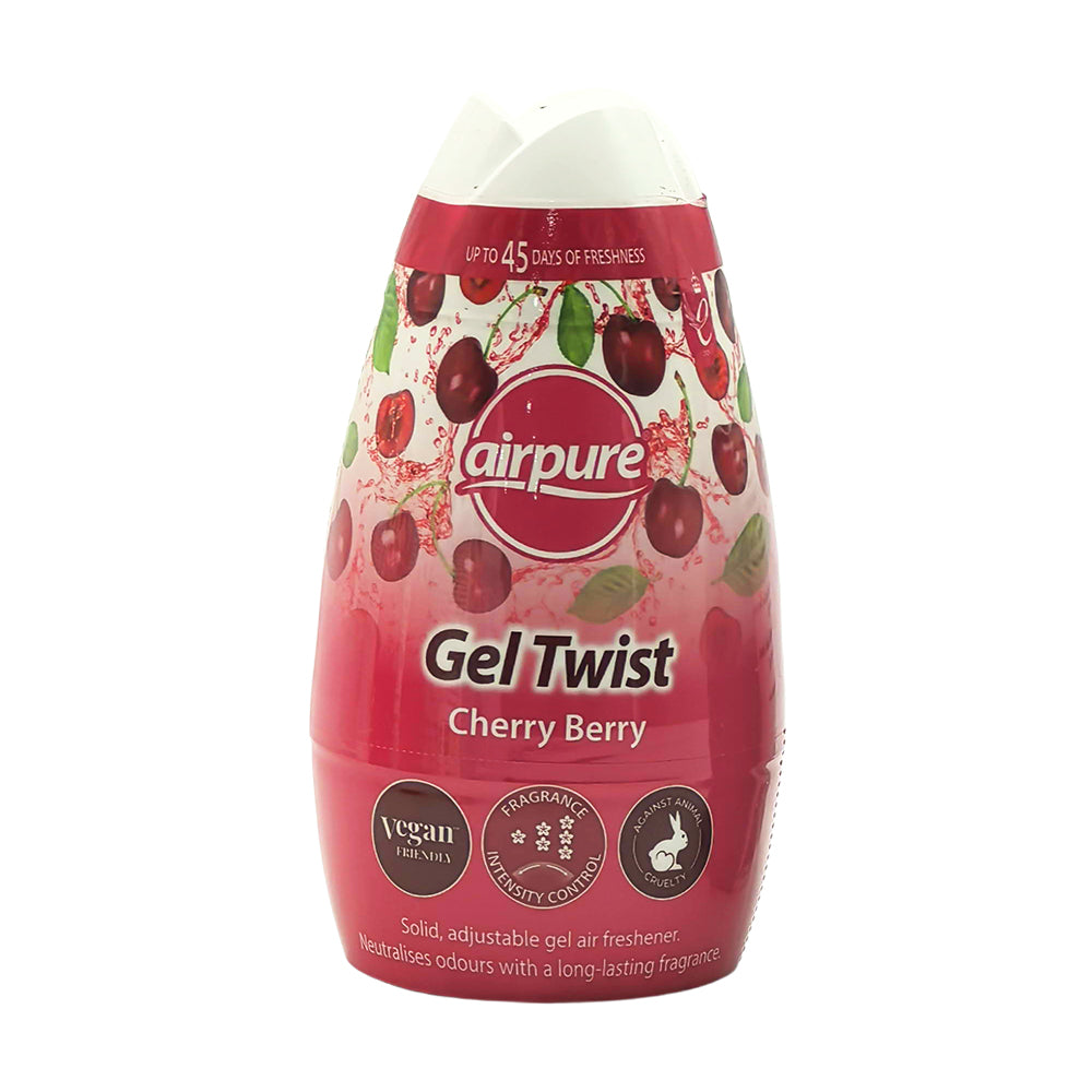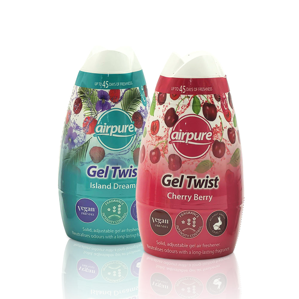 Freshen your space with ease using our Gel Twist Air Fresheners, designed to deliver continuous, long-lasting fragrance while helping to neutralise unwanted odours. Available in two uplifting scents, Cherry Berry and Island Dreams, this solid gel air freshener is perfect for keeping bathrooms and small spaces smelling clean and inviting.